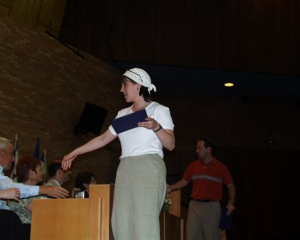 Off to collect her certificate