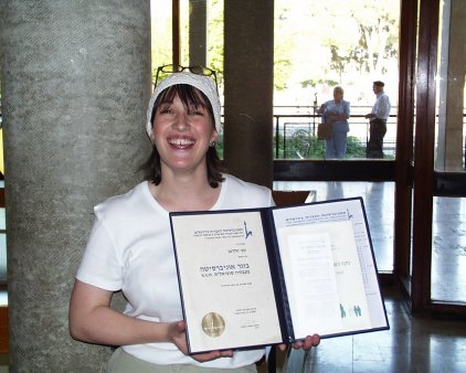 Here she is, with her certificate
